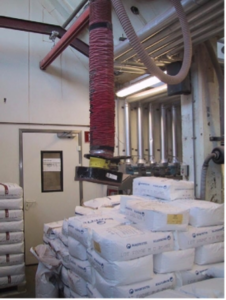 Het gebruik van een vacuümheffer voorkomt fysieke belasting van medewerkers bij het tillen van dozen en zakken. Bijvoorbeeld bij het palletiseren en bij het doseren/toevoegen van ingrediënten.